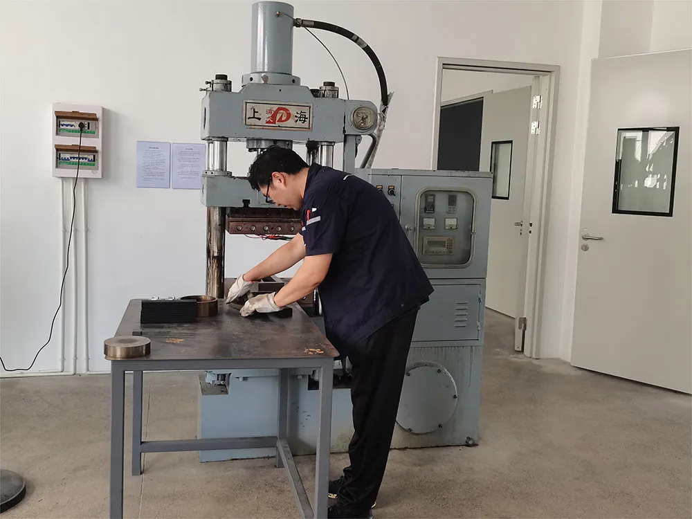 0638太阳集团(中国)有限公司是从事研发、生产、销售各类环保型摩擦材料的研工贸一体化企业,先后研发了锻造压力机摩擦块、电梯摩擦片、异型摩擦片、离合器摩擦片、空调离合器片、电梯曳引机制动块等一系列具有一定水平的产品,先后引进了自动化炼胶,自动化配料机等一系列新型设备,自主研发自动化涂胶机。